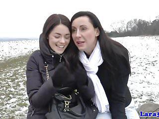 Lesbische Erotik im Schnee – englische MILF verführt junges Mädchen